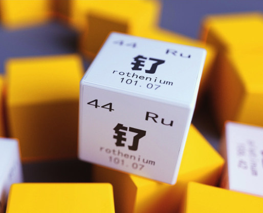 第44号元素钌,元素符号Ru,拉丁名Ruthenium,英文名同拉丁名。我国学者采用音译法将其命名为钌。钌字古已有之,它有两种读音:读liào时,指扣住门窗等的铁片,常被叫作“钌铞儿”,一端钉在门窗上,另一端有钩子钩在屈戌儿里;读liǎo时,指金属元素钌。钌为银白色,质硬而脆,不易加工,但耐磨性较强。钌是铂和钯的最有效硬化剂之一,与这些金属做成合金后,可作为抗磨的电焊材料。金属钛中仅加入0.1%的钌,就可以将钛的耐腐蚀性提高百倍。医疗上,钌的同位素钌— 106可用于杀死部分癌细胞。