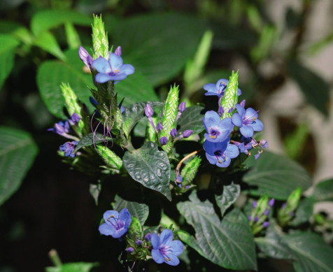 花青是一种重要的植物性颜料,属于水色颜料。花青色彩丰润,是绘制传统国画中的一种重要颜色,常与水墨同用,以渲染出中国画特有的文雅氛围。花青由蓝类植物的茎、叶加工而成。《本草纲目》中记载“南人掘地作坑,以蓝浸水一宿,入石灰搅至千下,澄去水,则青黑色。亦可干收,用染青碧”,说的就是从蓝草中提取靛蓝染料。蓝草在古代分为五类,所谓“蓝凡五种,各有主治”。现代药典规定,三种蓝草的茎叶加工制品可以入药,分别是菘蓝、蓼蓝、马蓝。蓼蓝具有解毒、解热和杀菌等作用。马蓝的根、叶、茎均可入药,具有清热解毒、杀菌消炎的功效,可预防流感,治疗风热感冒、扁桃体炎等。菘蓝的名气最大,亦称板蓝,其根部是中成药板蓝根的原料。
