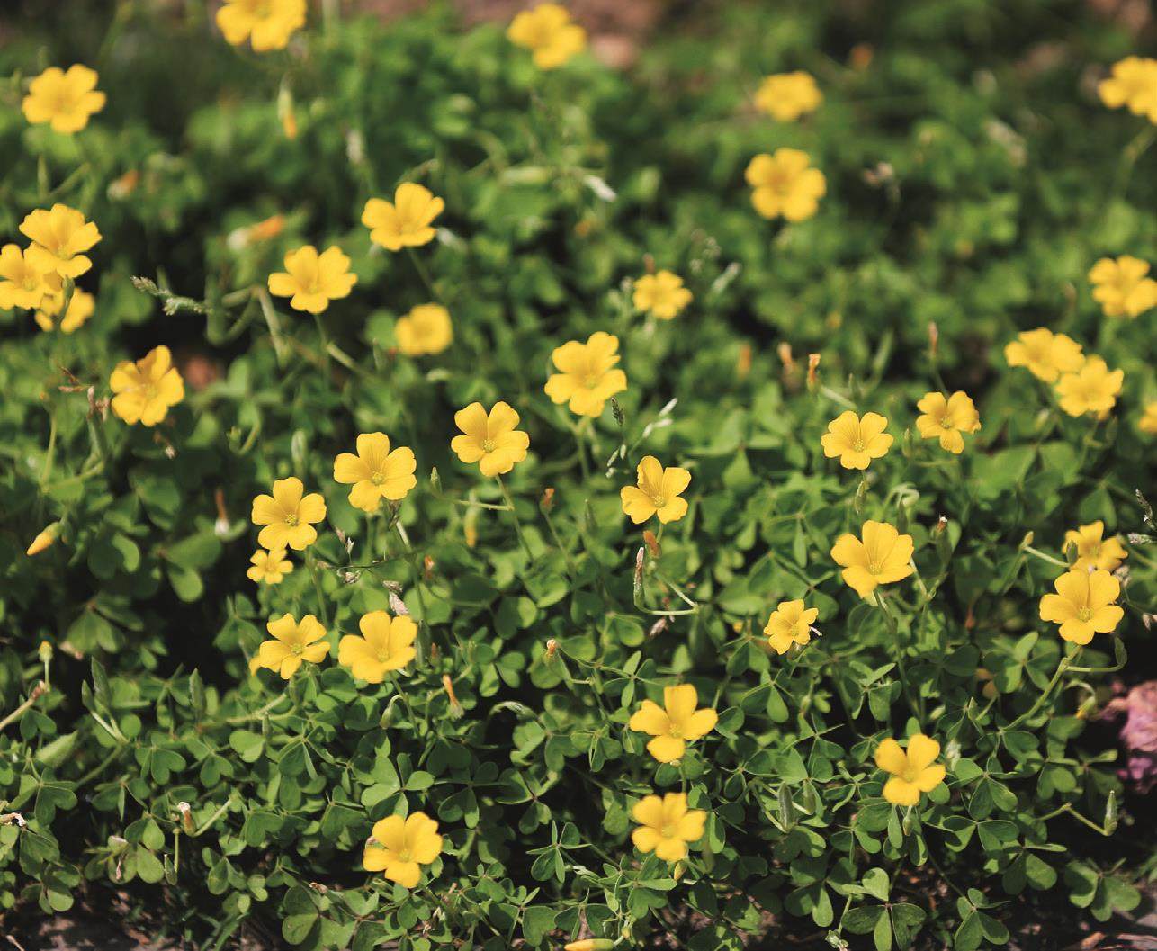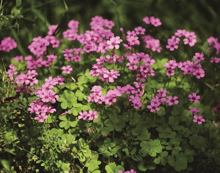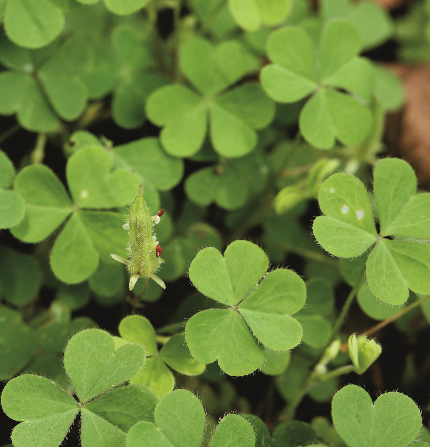 要说品种最多的三叶草,非酢浆草属植物莫属,其中最常见的有酢浆草(拉丁学名为Oxalis corniculata L.)、关节酢浆草(拉丁学名为Oxalis articulata Savign)和红花酢浆草(拉丁学名为Oxalis corymbosa DC.)等,它们的叶片由三枚倒心形的小叶组成,偶发性突变会出现四枚小叶组成的个体,再加上其茎叶富含草酸,所以就有了“酸三叶”的别称。