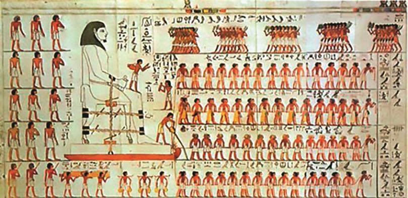 绳子伴随人类进化的历程而出现,在数万年前就已存在。自然界的细草、藤条、树根、树皮甚至蛛网等都能给人们提供“捆”“系”等概念,而常见攀缘植物的触须所呈现出来的“S”形或“Z”形自然扭曲状态,也为人们发明、制作和利用绳子提供了直观借鉴。据相关资料显示,公元前4000年的古埃及人已经普遍能用椰枣树和亚麻的纤维、纸莎草或驼毛等制作绳子。古埃及第十二王朝(公元前2000—前1786年)的墓碑画像上就有172个男人正用4条长绳拖动一座60吨重的巨像。