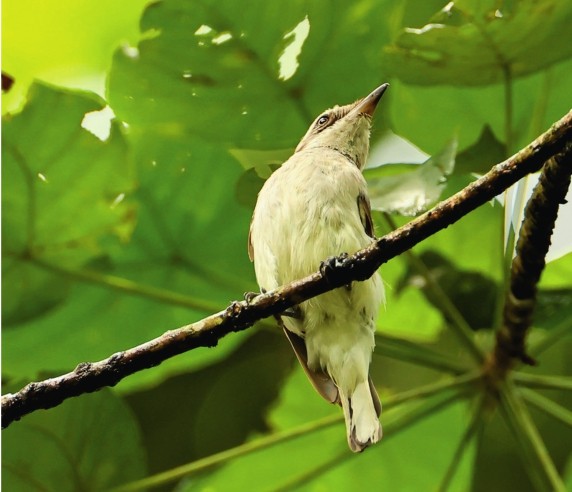 15分钟后,大雨戛然而止,明晃晃的太阳重新普照大地,树叶上的水滴好似晶莹剔透的钻石,大大小小的鸟儿欢快地跳跃在草地和树枝上,格外灵动。淡色羽毛的斯里兰卡林鵙、白眉扇尾鹟在枝头停留,鹊鸲和白腹卷尾身上闪耀着金属光泽,梯氏仙鹟隐藏在高枝上。