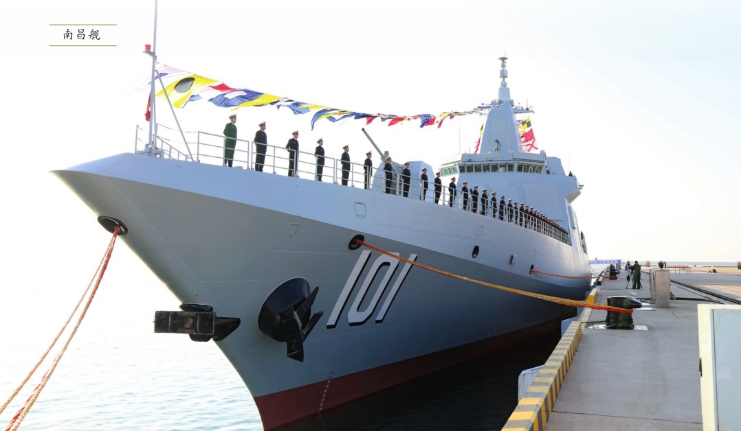 打造海上钢铁舰阵 十年间,新型战略核潜艇、大型驱护舰、综合补给舰等相继入列,舰载战斗机批量交付,预警机、舰载直升机再添新成员,新型反潜巡逻机补齐人民海军反潜作战短板。2020年1月12日,我国自主研制的055型导弹驱逐舰(以下简称055舰)首舰南昌舰归建入列,这是人民海军驱逐舰从第三代向第四代跨越的里程碑。随后,拉萨舰入列、大连舰公开亮相、鞍山舰和无锡舰进入公众视野。055舰装备了先进的武器和雷达系统,具备高度的信息化和自动化水平。无论是以其为核心组建的水面舰艇战斗群,还是加入航母战斗群作为护航舰艇,都大幅提升了中国海军的整体作战能力。