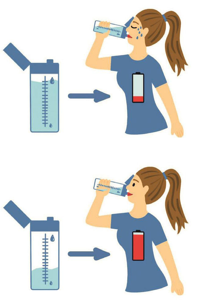 相比之下,女性每日的饮水量更小,因为女性的非脂肪成分低于男性,例如,一位20多岁的女性,每日的饮水量可能只要1.3~1.4升。