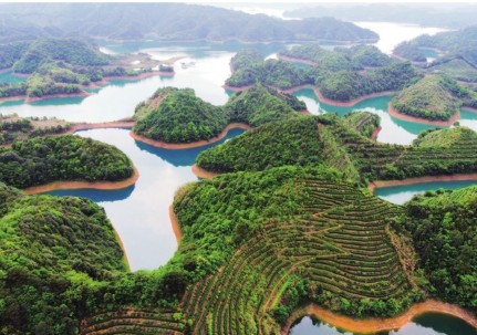 著名的钱塘江凭借巨大的流域面积与河流的长度成为我国浙江省第一大河流,它自西往东注入杭州湾,在入海口处形成了极其壮观的钱塘潮。如果我们溯源而上,到达钱塘江的上游新安江,会看到另一处举世罕见的奇观。这里群山叠翠,峡谷幽深,碧波万顷,千岛竞秀。郭沫若先生曾在此地留下赞美的诗篇:“西子三千个,群山已失高,峰峦成岛屿,平地卷波涛。”它就是被誉为“天下第一秀水”的千岛湖。