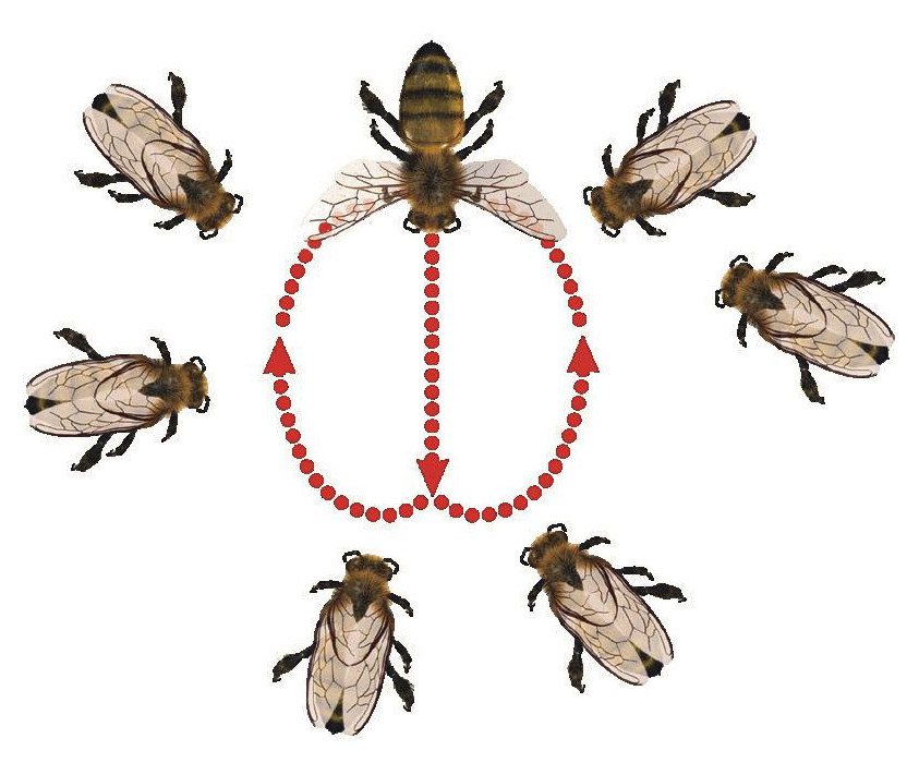 蜜蜂的头部和身上长满了绒毛,很容易粘上花粉,看上去甚是可爱。一只蜜蜂可粘住5万~75万粒花粉。蜜蜂头部的两根触角与众多神经相连,每只复眼都由5000多个小眼构rZZ+htaUyU+GkYuUPN1nspYKKOOX8ez5QYSQOC9JjKw=成,所以它们能准确定位蜜源植物的位置。发现蜜源植物之后,它们并不会独享,而是“快马加鞭”地回到蜂巢把消息告诉同伴。膜质翅使得它们具有极强的飞行能力,每秒可振翅300多次,飞行时速可达40千米。蜜蜂会一遍又一遍地跳优美的“8字舞”,告诉同伴蜜源植物的品质、距离和位置,收到消息的伙伴便迫不及待地飞出去采蜜。