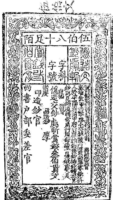 三是对制币工艺加以改进,增加防伪标识,如在纸币上印有屋木人物、铺户押字等,然后用朱、墨两色将隐密题号加入其中,以为私记;此外,政府还增加了钤印的数量,采用精美复杂的雕版以及套色印刷技术,增加了民间仿造的难度。