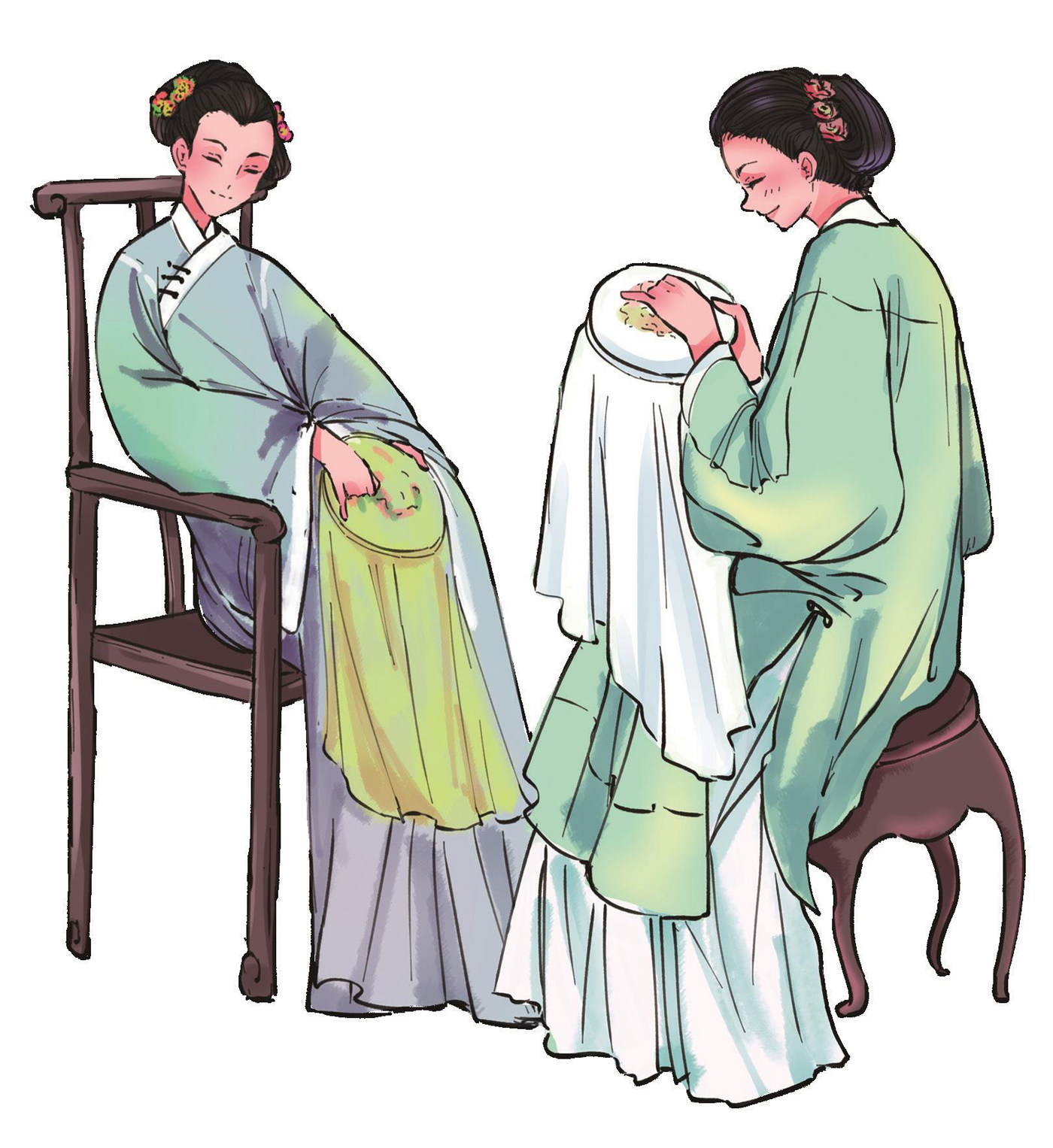 虽然也有“张飞穿针—大眼瞪小眼”的歇后语,但在中国,无论是文献记载还是社会分工,女性都毫无疑问地承担了绝大部分针织和缝补的工作。至迟在宋代,熟练使用缝衣针成为成年女性的必备技能。南宋文人洪迈在《夷坚志》中记述,盐城有一位名叫周六的织席匠,因为忙于生计,无暇教授训练女儿的针线活,使得女儿十七八岁出嫁后仍“不识针钮之事”。结果,她因“不能缝裳”而被婆家赶出来,又因家里“父母俱亡,无以糊口”,最后只能流浪街头靠行乞为生。文学巨著《红楼梦》中也多次提到女性用针刺绣,其中第五十二回对“晴雯病补雀金裘”的描述最为精彩。清代王初桐在编纂的女性案头经典《奁史》中如此总结:“刺绣、女红,妇人正事也。枕顶、礼鞋皆嫁后拜人之礼,即多不为过。”