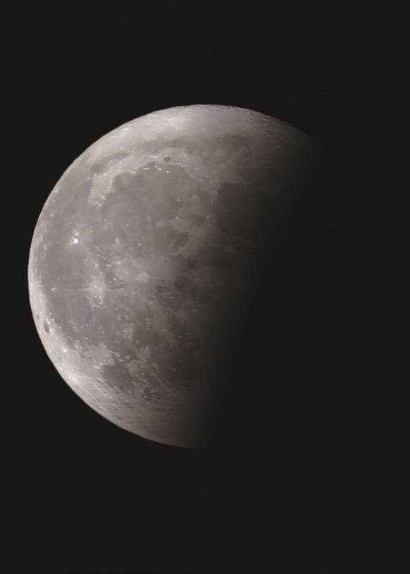 在月球上,光明与黑暗的对比程度要比地球上大得多,也就是说,月球上的阴影要暗许多。在地球上,空气会散射光,不在阳光直射下的物体仍然能被照亮,这就是所谓的瑞利散射效应。月面大气稀薄到接近真空,所以不会发生瑞利散射,这就导致月球上的阴影非常暗。相反,月球上阳光直射的地方会显得更加明亮,这是因为月球表面被反射性灰尘的细角颗粒覆盖,这些粒子倾向于将光直接反射回光源。这就是月球上阴影更暗、亮处更亮的原因。