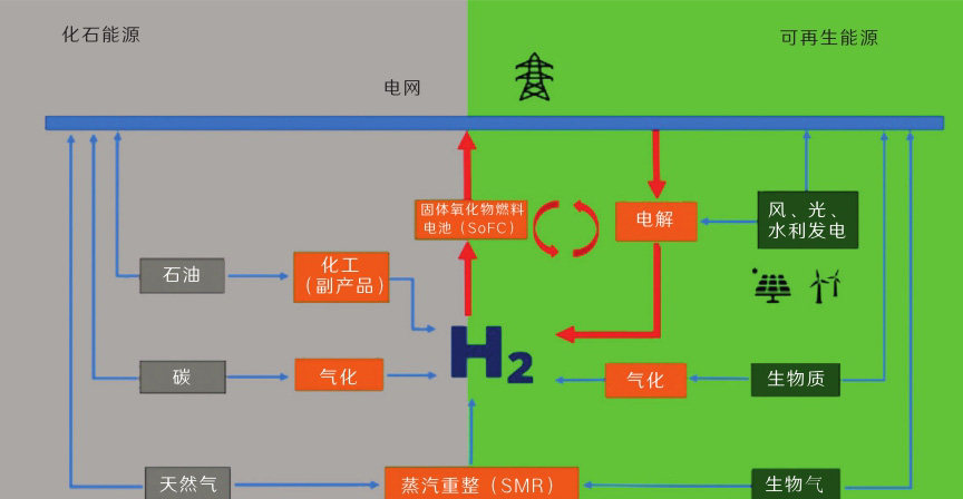 目前的制氢技术主要分为化学能制氢、生物质制氢和风电、光电制氢技术等。