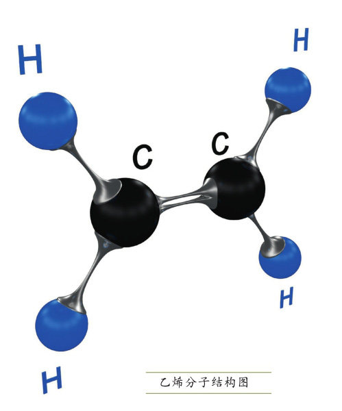 1934年,英国科学家理查德·甘恩利用化学分析法从成熟苹果产生的气体中成功分离出乙烯,证明了乙烯是植物自身产生的天然气体。除了果实,在一定条件下,高等植物的叶、茎、根、花、块茎、种子及幼苗都会产生乙烯。随着果实的不断长大,植物会感觉时机已到,于是主动产生乙烯,奏响成熟前的号角。号角一响,植物体内的各种物质都开始“忙活”起来:一些酶开始分解叶绿素,合成新色素,于是果实会呈现出各种诱人的颜色;淀粉开始转化成糖,于是果实变得甜滋滋的;果胶开始分解,于是青果从硬变软……可以说,乙烯是指挥果实成熟的“司令官”,负责调控植物体内与果实成熟有关的各种化学反应。