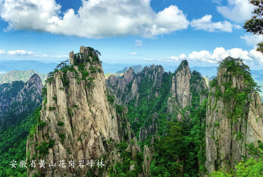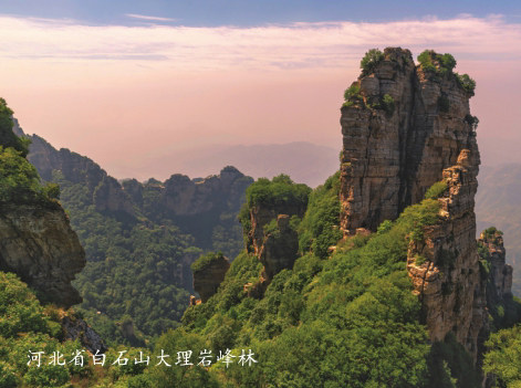 广义的峰林还有砂岩峰林、花岗岩峰林、大理岩峰林等多种类型。例如,湖南省张家界世界地质公园内分布着大量的砂岩峰林地貌;安徽省黄山世界地质公园属花岗岩峰林景观,以奇峰峭拔、雄峻瑰奇而著称,景区内千米以上的高峰有72座;河北省白石山国家地质公园以大理岩峰林为特征,这里的石峰下部为肉红色的花岗岩基座,中上部为白色大理岩,呈现“双层地质结构”。