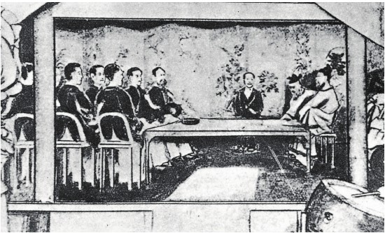 1853年7月8日,佩里率东印度舰队进入日本江户湾,要求与德川幕府谈判开国通商事宜,这便是历史上有名的“黑船事件”,中国史书称之为“佩里叩关”。1854年春,佩里舰队再次驶抵日本,双方于3月31日签订了《日美亲善条约》,日本由此结束了闭关锁国的时代。7月17日,佩里舰队驶抵琉球,威逼琉球国王签订了《琉美亲善条约》。在条约的谈判过程中,琉球一再向美方阐明自己与中国的宗藩关系,对于美国强行开港的无理要求,表示要征得清廷的应允。尽管条约双方均承认中国与琉球的宗藩关系,表面上也表示要维持和平局面,但此时的琉球已深陷内忧外患之中。