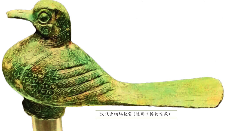 说到这里,或许大家会有疑问:为何用鸠来装饰王杖?鸠有何特殊之处?其实不仅是我们,古人也对鸠有着诸多疑问。汉代著名学者王充曾问道:“著鸠于杖末,不著爵,何杖?苟以鸠为善,不赐鸠而赐鸠杖,而不爵,何说?”