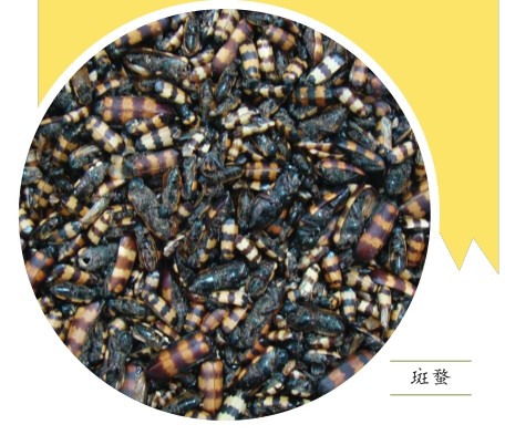 斑蝥有大毒,具破血逐瘀、散结消癥、攻毒蚀疮之功效。在《中华人民共和国药典》(2020版)中,斑蝥特指芫菁科昆虫南方大斑蝥(Myabris phalerata Pallas,也称大斑芫菁)或黄黑小斑蝥(Mylabris cichorii Linnaeus,也称眼斑芫菁)的干燥体。外用多以干燥全虫入药,内服则需要去头足及鞘翅后入药。除了汉本草所记载的主治功效之外,斑蝥在藏、蒙、维、彝、瑶、苗、满等多个民族医药典籍中亦有药用记载,且药用历史悠久,涉及了芫菁科多个物种。