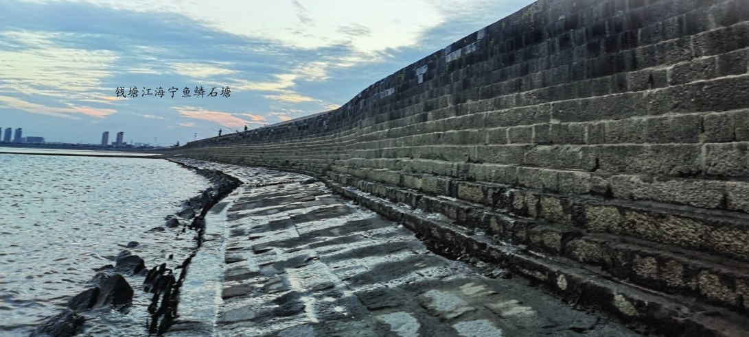 清康熙五十九年(1720年),巡抚朱轼于海宁城南主持修筑石塘,在“五纵五横鱼鳞塘”的海塘修筑技术上进行了改进。从筑塘基开始,打桩分为两步,先打梅花桩,再打马牙桩,为的就是稳妥;随后砌筑塘身,均采用厚1尺(约33厘米)、宽2尺、长5尺的条石层层垒砌,总共垒砌20层,每一层之间都要错缝,各层的宽度也是自上而下依次递减而收分,使塘身呈外坡内陡之形。为了保障塘身的坚固,每塘塘石上下左右都要凿出槽榫,嵌以铁锭和铁锔,使各条石间相勾连而不松动。铁锭以生铁为主,铁锔则用熟铁,缝隙处再用石灰、糯米汁、油灰浇灌,让条石之间能够犬牙相衔、互相牵制,这长达500丈(约1667米)的鱼鳞石塘由此形成了命运共同体。清雍正二年(1724年),浙西沿海风潮大作,几乎所有土石塘皆被毁,唯有朱轼主持修筑的鱼鳞石塘安然无恙,因而被作为“样塘”加以推广。在此重型石塘的基础上,清乾隆二年(1737年)至乾隆八年(1743年),又兴建了鱼鳞石塘近6000丈(约20千米)长,此后境内少有大潮灾出现。