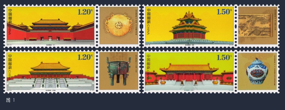 2015年,我国国家主席习近平访问英国,送给英国女王伊丽莎白二世的国礼中有一本邮票册。这册名为《中国》的国礼邮折采用中国传统的经折装形式,封面烫金标题为“中国China”,外加中国传统吉祥图案升云纹的半插套,内文采用仿宣纸材质,配合《故宫博物院》(图1)、《万里长城》(图2)、《秦始皇陵兵马俑》(图3)3套邮票,庄重肃穆,端庄大气,凸显了浓厚的中国传统文化特色。