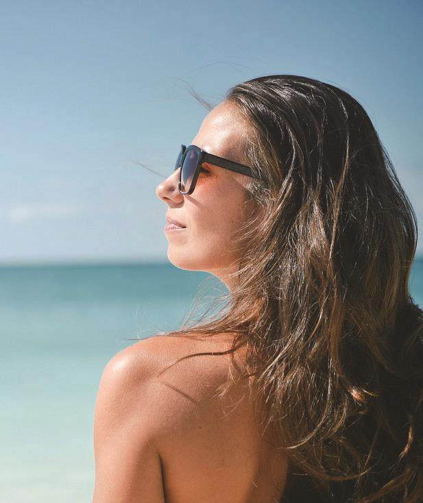当皮肤过度暴露在阳光下时,紫外线会刺激皮肤中黑色素细胞的活性,促使其合成并释放出更多的黑色素。这是一种自然的保护机制,目的是吸收紫外线,减少对皮肤细胞的损伤。这些黑色素分布在皮肤的表皮层,从而使皮肤看起来变黑了。而当头发暴露在阳光下时, 头发中的黑色素会吸收部分紫外线并被降解, 这一过程会使发色逐渐变浅, 并可能导致头发变得枯黄。