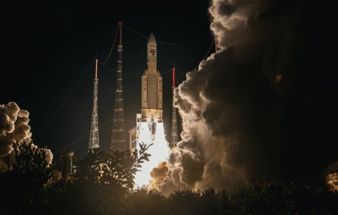 北京时间2024年7月10日凌晨3时,欧洲航天局(ESA)新一代大型运载火箭—阿丽亚娜- 6从圭亚那航天中心升空,执行首次发射任务。火箭顺利点火起飞,助推器和第一级均正常工作并分离;在第二级的推进下,火箭进入预定轨道,分离了搭载的8颗立方星,完成了此次发射任务的主要目标。