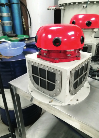 目前,采用中心管技术的振荡水柱式波浪能发电装置已非常成熟。比如,中国科学院广州能源研究所研发的BD系列振荡浮子式波浪能发电装置已应用于海洋观测浮标上,可以为浮标搭载的各类传感器和设备提供持续稳定的电力供应。其中,BD102型(图11)振荡水柱式波浪能发电装置的装机容量为60瓦,能够有效将海浪能量转化为电能。