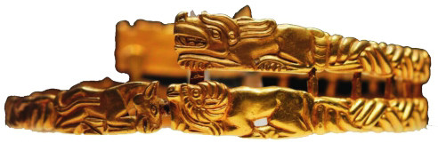 在已发现的众多匈奴金银器中,动物纹饰可以分为单体动物、复合动物和动物搏斗三种造型。