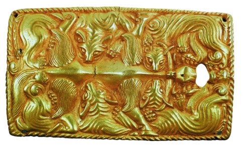 除了阿鲁柴登墓出土的这件鹰顶金冠饰外,我国山西、陕西、甘肃等地也发现了匈奴金银器和青铜器,上面刻画有多种动物纹饰,主要属于战国晚期和西汉两个历史阶段。匈奴人的墓葬中出现数量如此之多的动物纹并非偶然,而是匈奴人的生活习惯和信仰在器物上的再现,正所谓“形而上者谓之道,形而下者谓之器”。这里的“器”指金银器的采冶铸造技术,这是物质基础;而“道”则为金银器背后的礼治、文化和信仰,是上层建筑。