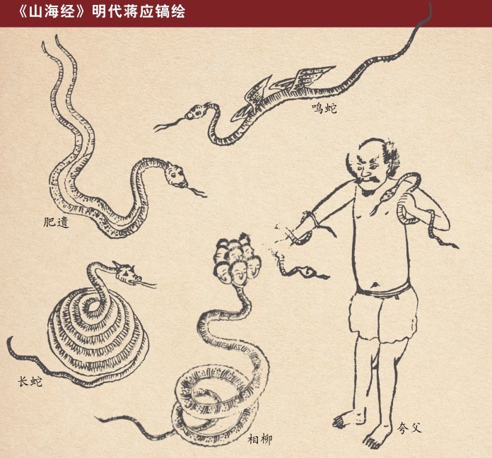 作为自然界的重要生物,蛇很早就进入华夏先民的视野中。神话文本《山海经》中就列出了肥遗、大蛇、螣蛇、长蛇、化蛇、鸣蛇、象蛇、育蛇、虺蛇等多种蛇类。这些形态各异的蛇被先民附着了太多的神异传说,成为先民原始信仰的重要内容:如肥遗,据说有六足四翼,它出现的地方就会大旱;又如长蛇,据说毛如猪鬃,鸣叫如梆子声;等等。