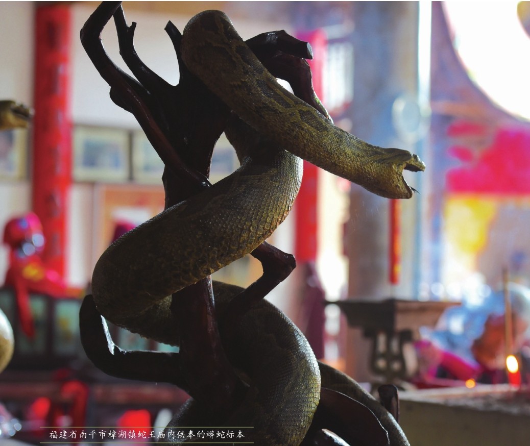 福建简称“闽”,“闽,东南越,蛇种,从虫、门声”。受文化传统的影响,涉蛇的习俗广布于当地民众的日常生活之中,如有崇蛇的场所—蛇王宫和媚蛇的庆典—蛇王节,以及民众日常的蛇禁忌,不一而足。