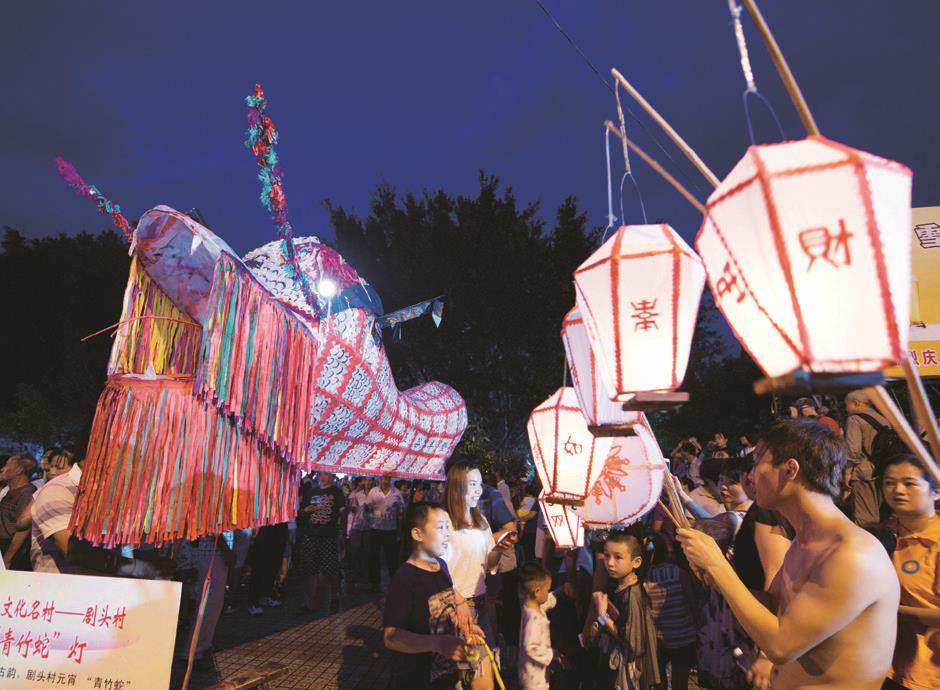 蛇的影响也见于民间游艺中。英歌舞是流行于广东潮汕地区和福建漳州地区的一种民间舞蹈,它集民歌、戏剧、武术于一体,有独特的步法、身法、槌法、阵法,多以集体舞的形式表演。舞者双手各持一根短木棒,上下左右互相对击,动作健壮有力,节奏感强烈。关于这种舞蹈的起源有多种说法,其中一说认为英歌舞队伍中探路的舞蛇动作源自闽南人对蛇的崇拜。