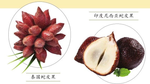 在东南亚及印度等地,出产这样一种水果,其外形奇特,下圆上尖,红褐色的外皮表面有着如同蛇鳞般的纹理,因此得名 蛇皮果,有时也被称为蛇鳞果。