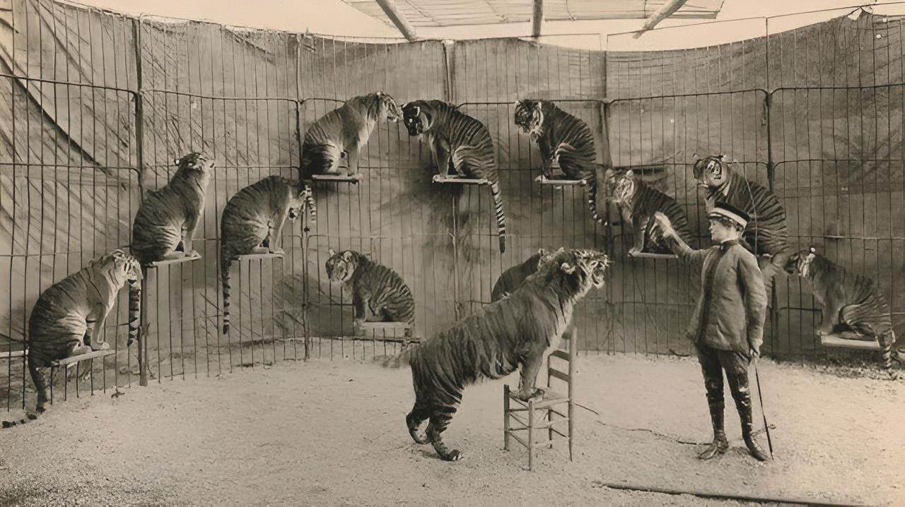 到了19世纪,为了满足大众的猎奇心理,欧洲出现了现代动物园。偷猎者、动物贩子从亚洲丛林中捕猎老虎运送到欧洲动物园,推动了老虎最大规模的欧洲旅行。英国动物史学家布莱恩·费恩在《亲密关系:动物如何塑造人类历史》一书中回顾说:“伦敦中心区的埃克塞特交流动物展吸引了众多观众—一幢商业建筑楼上的两个大厅里挤满了各种动物,它们被塞在笼子里,几乎没有转身的余地……较大的那个大厅里关着2只老虎、1只狮子……”“1851年的万国工业博览会展出了各种猎物,从珍稀英国鸟类到印度虎,品种繁多”。