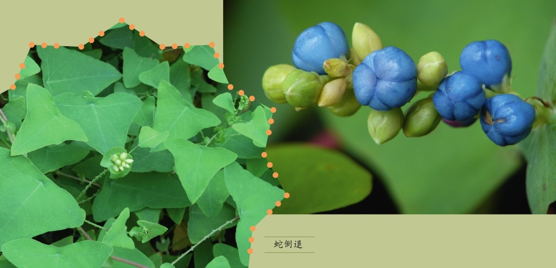 蛇倒退为蓼科蓼属一年生攀缘草本植物。其茎红褐色,多分枝,具纵棱,沿棱生有倒钩刺。叶互生,盾状着生;叶片薄纸质,近三角形,先端尖,基部近心形或截形,上面无毛,下面沿脉疏生钩刺;托叶鞘近圆形,抱茎,绿色;叶柄与叶片近等长,疏生倒钩刺。总状花序呈短穗状,不分枝顶生或腋生。花被淡红色或白色。瘦果球形,褐色,有光泽,包于蓝色多汁的花被内。花期在6—8月,果期在7—10月。