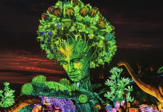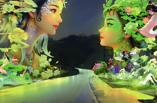 随着夜幕的降临,中华彩灯大世界里悄然开启了一场精彩的灯光盛宴。千姿百态的灯组在黑夜中闪烁着五光十色的光芒,美轮美奂的彩灯让人目不暇接。漫步其中,犹如进入童话世界。今年的自贡灯会以“灯贺中华气象万千”为主题,通过12组特大型灯组、7组大型灯组、200余组中小型灯组讲述中华大地万千气象,在“迎春贺年”“侏罗纪河谷”“阆苑仙境”“欢乐盛典”“自贡年轮”“文明交辉”“一路繁花”七大主题区进行“聚光”表演。游客可以看到以自贡“小三绝”之一的剪纸为灵感创作的长达55米的巨型大门,高达9米的自贡灯会史上最大单体“财神”,长达220米的中国古典神话仙境《华彩神州》灯组,以《白蛇传》为蓝本打造的白蛇、青蛇巨型“网红”灯……此外,灯会还利用园中地势,巧妙融合自贡特色仿真恐龙、自贡彩灯和前沿AI科技,完美再现侏罗纪恐龙谷。