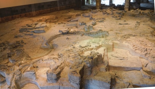 走进博物馆,除了可以饱览形态多样、大小不等、完整度极高的恐龙骨架标本,还可以目睹规模宏大、气势壮观的恐龙化石埋藏遗址,欣赏到精美完整的恐龙头骨、皮肤(印痕)、足迹和恐龙蛋等化石珍品。