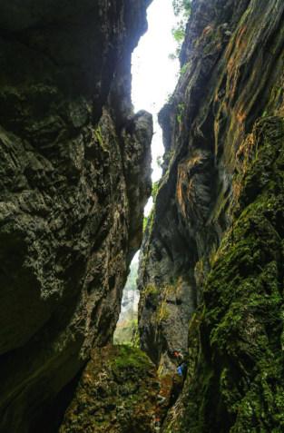 乌蒙大地缝是其中最值得关注的景观。这条大裂缝全长约15千米,宽度在10~20米,最窄处仅有两三米。地缝内时高时低、时宽时窄,崖壁两侧如刀削斧劈,部分路段仅容一人通过,抬头只见一线天。如此罕见的地质奇观是在漫长的地质历史时期由地壳运动和流水侵蚀共同作用的结果。地壳运动导致石灰岩地层受到挤压并发生断裂,地表水和地下水通过冲刷和溶蚀作用,不断侵蚀着岩层中的裂隙,将其中的松软物质逐渐带走,最终形成了我们今天所看到的乌蒙大地缝。