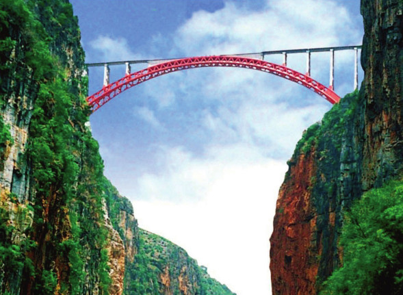 在六盘水市水城区有一座极为罕见的天生桥,被称为金盆天生桥。此桥原为暗河通道,后因洞穴坍塌而形成。金盆天生桥桥面平整,顶拱厚实,整座桥高136米,跨度为60米,桥宽35米,顶拱厚15米。据中外岩溶地质学家考证,金盆天生桥为世界上最高的、可通公路的天生桥。