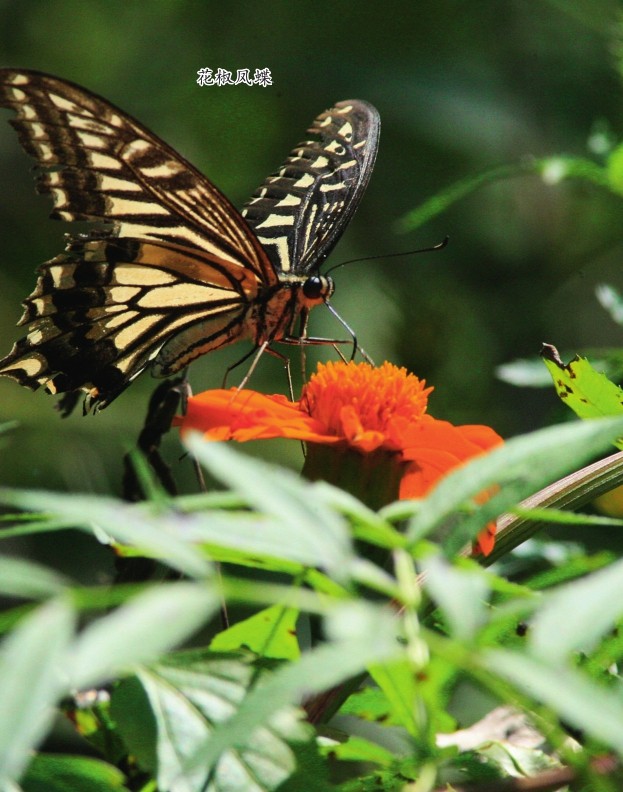 花椒凤蝶隶属鳞翅目凤蝶科,是我国常见的一种大型凤蝶,翅展9~11厘米,喜欢在向阳、繁茂的林间飞舞。因为其幼虫在我国北方主要生活在花椒树上,而在南方主要生活在柑橘树上,所以又被称为柑橘凤蝶。花椒凤蝶的成虫形态优美,雌雄差异不大;色斑鲜艳;翅黄绿色,前后翅外缘有宽大的蓝灰色带斑,臀角有黄橙色斑。雄蝶一生可交尾多次,雌蝶只交尾一次。雌蝶将卵产在寄主植物的叶子背面,幼虫经历5个龄期后化蛹。花椒凤蝶在北方一年发生2代,在南方一年可发生4、5代,以蛹越冬。