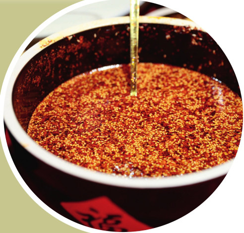 “刺啦—”热油与辣椒碰撞而成的油泼辣子交响乐奏响了饕餮盛宴的序曲。油泼辣子是陕西人的灵魂调味料,在“陕西十大怪”中有“油泼辣子一道菜”的说法。