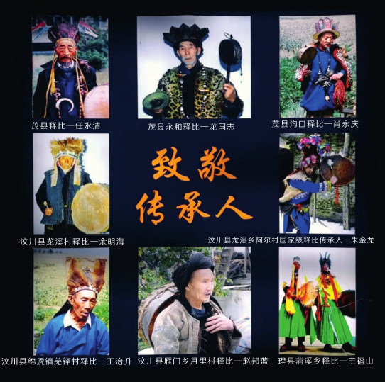 “释比”在羌年的节庆活动中肩负着特殊职责。那么,“释比”究竟是谁呢?据传,“释比”是天神派遣到人间的神圣使者,他可以连接生死、直通神灵、福泽民生,是羌族最具权威的文化人和精神领袖,在羌族人的心目中具有崇高的社会地位。谁可以扮演“释比”这一重要角色呢?一名合格的“释比”,通常要在家族内部进行师徒、父子相传;且由于羌族只有语言没有文字,“释比”本人还须将羌族人的历史、文化、生产、生活及所诵经文等烂熟于心。所以,随着现代社会的发展,与其说“释比”具备神力,将其视为主持各类羌族礼祭与法事的神秘祭司;倒不如说他们通晓经典、掌握仪轨、能歌善舞,可谓羌族传统文化与表演艺术的创造者、继承者和传播者。他们通过“口传心授”的方式将羌族文化一代代传承至今,是“活着的羌族史”。与此同时,他们也在无形中承担着协调村寨关系、促进社会和谐的重要文化使命。