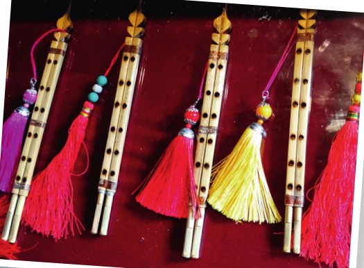 “羌笛何须怨杨柳,春风不度玉门关。”这首大家耳熟能详的《凉州词》中所提到的“羌笛”便是羌年歌舞欢庆时的重要伴奏乐器之一。作为一种古老的六声阶双管竖笛,羌笛至今已有3000多年的历史,是用当地高山生长的油竹制作而成,管身细长,双管并排用线缠绕在一起,所吹音色清脆悠扬。“羌笛演奏及制作技艺”也早在2006年就被列入第一批国家级非物质文化遗产代表性项目名录。除羌笛外,还有手铃、唢呐、小锣、胡琴、口弦等伴奏乐器,这些乐器组合在一起,通过吹、弹、奏的表演形式,配合欢歌热舞共同诠释出独具羌族特色的音调与韵味。