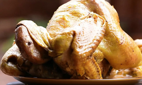 再继续往前走,街边餐馆菜单上的含盐量也令人咋舌。黑井的盐,因品质超群,历来都是宣威火腿、双柏妥甸酱油的指定用盐,同时也渗透到黑井人的血液里,孵化了当地最为著名的盐焖系列。黑井盐焖系列,主要由盐焖鸡、盐焖肉、盐焖肝、盐焖肠、盐焖青豆等盐焖菜构成。其中,盐焖鸡是最典型的代表,也是黑井家家户户都会做的佳肴。烹制盐焖鸡,首先需要制作香气扑鼻的调味汤来腌制当地土鸡。调味汤做法简单,只需将葱、姜、草果、八角、盐、味精等放入开水中浸泡出味即成。土鸡在调味汤里腌制20分钟后,用白棉纸将整只鸡包起来,相较于宣纸,白棉纸的吸水性更好,同时还能锁住鸡肉的香气。把包好的整鸡放入已经铺了一层盐的锅里,再往锅里倒足量的黑盐,将鸡完全包裹起来进行烘烤。接下来,只需要把味道的指挥权交给时间。这种盐焖制作的鸡肉,黑盐的咸香与鸡肉的浓香混合在一起,鲜嫩与爽滑并行,足以让味蕾都为之起舞。