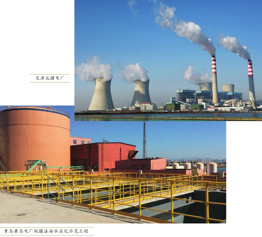 在山东青岛黄岛新区,黄岛电厂低温多效蒸馏海水淡化示范工程采用国内首台自主设计的低温多效蒸馏海水淡化装置,自主研发率达99%,可日产3000吨淡水;黄岛电厂双膜法海水淡化示范工程采用多层立体结构设计,可减少占地面积,并采用超滤+反渗透处理工艺,实现了膜法海水淡化的集成创新,也可日产30045a363b71d9275cd4e1e500dff63c1400吨淡水。