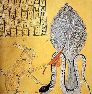 古埃及神话中的混沌、黑暗之神阿佩普,被视为太阳神拉的死对头(图14),它常以巨蛇的形象躺在大地之下。阿佩普的躯体足以围困世界,它的咆哮能令人界和冥界发生剧烈的震荡,从而引发地震。
