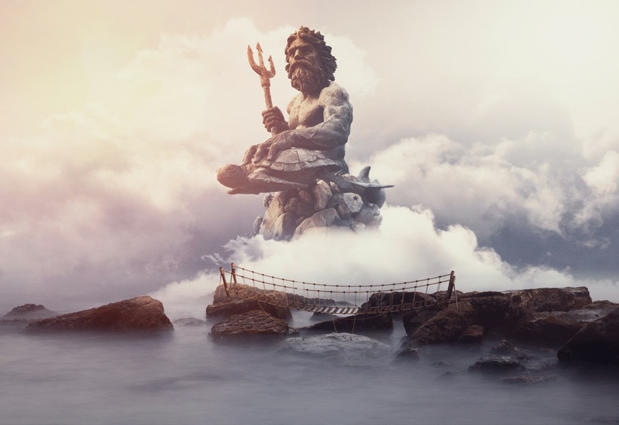 在古希腊人看来,海啸及其引发的地震还与大海的主宰波塞冬有关,当他挥动三叉戟时,巨浪滔天,山崩陆沉。因此,波塞冬也被称为“撼地者”(图16和图17)。在这一神话的影响下,古希腊哲学家亚里士多德认为地震是地下的水流侵蚀岩石造成的。古希腊人还将马视为波塞冬的象征物之一。因此,有学者认为,《荷马史诗》中讲述的“特洛伊木马”导致城破国亡,可能是在暗示现实世界里特洛伊城毁于地震。