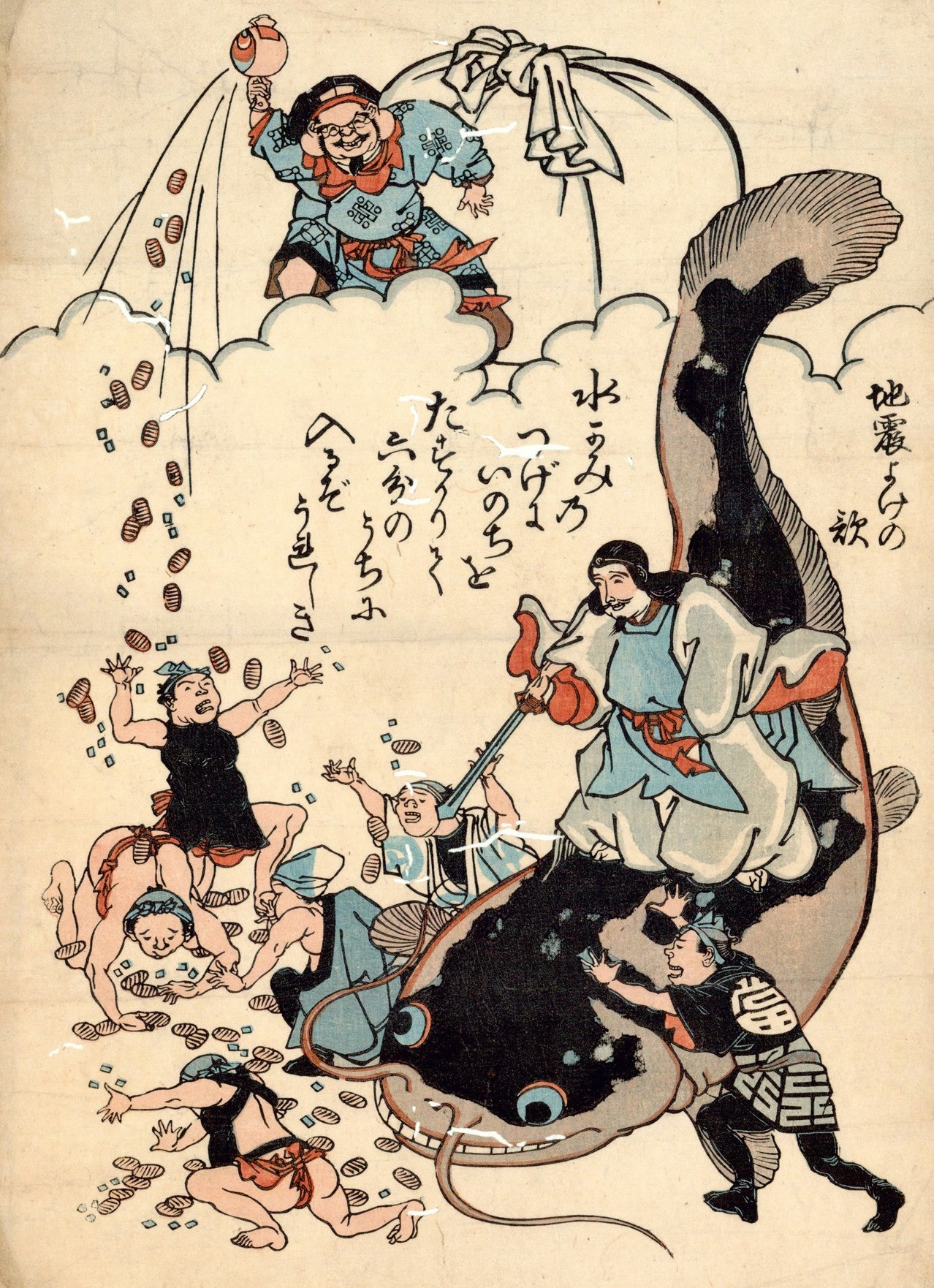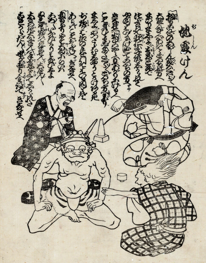 我们的邻国日本是一个地震多发国家。该国因地底巨型动物引发地震的神话影响深远,一直流传到近代,并经过数次流变。传说,日本列岛之下栖息着一条盘成环形的巨龙,它的活动会引起地震。后来,该传说又演变成“蛇蟹相斗”或是“鳗鱼与蟹相斗”,它们相持不下,被蟹钳夹住的蛇或鳗鱼抖动身体,导致地震发生。
