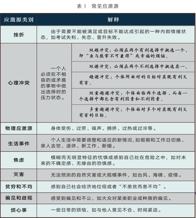 在通勤过程中,人接受到刺激并做出反应,其实是一个应激过程。这一过程包括应激源和应激反应两个部分。识别应激源并调控我们的应激反应,是情绪管理的基本途径。那么,什么是应激源呢?应激源是指那些能引起自主神经系统反应的刺激物(见表1)。