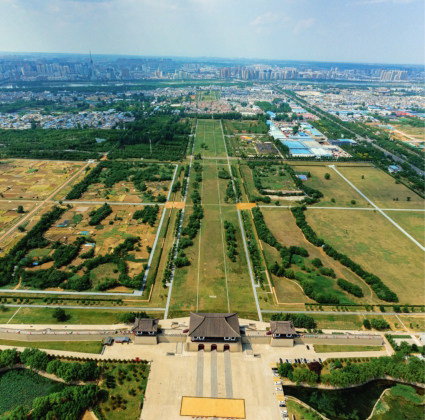 洛阳是闻名于世的古都,先后有13个王朝在此建都。它位于洛河冲积谷地中,四周群山环绕。广义的邙山位于黄河南岸,西起三门峡,经洛阳一直绵延至郑州;狭义的邙山则是广义邙山的洛阳段,它是黄河与洛河的分水岭,也是洛阳北部的天然屏障。邙山并不奇峻,平均海拔仅300余米。它的形成过程与黄土高原类似,是黄土在风力作用下长年累月堆积而成,山顶开阔平坦,山坡起伏和缓,远远望去更像是隆起的台地。邙山的黄土层深厚、质地坚硬、渗水率低,从山上往下挖十多米都见不到地下水,非常适合建造墓穴。此外,古人认为北方象征寒冷、幽暗和死亡,所以墓地多选在居住区北边。古代的风水堪舆理论也认为“头枕山,脚蹬川”的高地是理想的安葬先人之地,邙山正好符合这些条件。