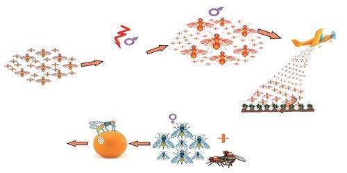 所谓辐射不育,指的是利用钴-60、铯-137放射源放出的γ射线或加速器产生的电子束,对雄性害虫的虫蛹或成虫进行一定剂量的照射使其不育的方法。经过工厂化饲养之后,再把这些丧失生育能力的雄性害虫释放到田间,它们与雌虫交配后无法产生后代。