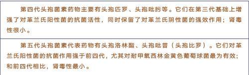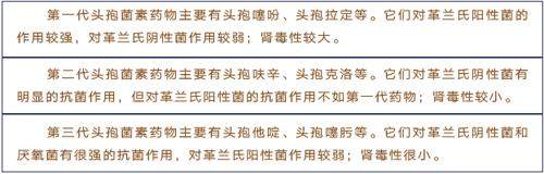 目前,头孢菌素药物已发展至第五代,每一代都有特定的抗菌谱。