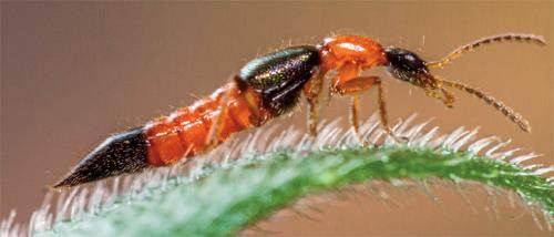 其实, 毒隐翅虫是农业上一种常见的捕食性天敌昆虫,能捕食蚜虫、鳞翅目幼虫等20 多种农业害虫,常作为一种农业益虫被加以保护利用。毒隐翅虫多生活在潮湿温暖的环境中,喜欢白天活动。受到惊扰时,它们或快速爬行,或从农作物、杂草丛中迅速起飞。夜幕降临后,有些毒隐翅虫会主动扩散;暴雨前闷热天气的傍晚,主动扩散行为更为明显。这可能是因为种群密度过大而寻找更合适的栖息场所,也可能是因为不同种群之间存在竞争。当然,当生存空间受挤压或食物紧缺时,竞争不仅会发生在不同种群之间,同种群间的成虫和幼虫也会相互残杀。那么,本应活跃于田间、河岸、沼泽等环境中的毒隐翅虫,为何近年来频频侵扰城市居民呢?这主要是因为城市化进程的不断加速,让一些种类的毒隐翅虫的栖居地不断遭到破坏,导致它们被迫“跨界”到城市居民区。加上毒隐翅虫具有很强的生物适应性,因此,也就从城市“移民”变成了“常驻民”。