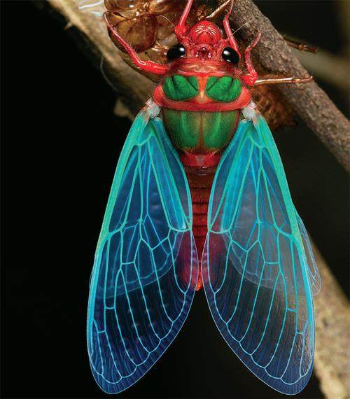 虽然蝉的叫声非常响亮,尤其一些大个头的蝉甚至能发出超过120 分贝的声音,但是它们并不会被自己的叫声吵聋,这是因为蝉具有一种自我保护机制。蝉的腹部有一对巨大的镜状薄膜,被称为鼓膜,它们起着类似耳朵的作用。鼓膜通过短肌腱与听觉器官相连。当雄蝉唱歌时,肌腱会收缩,使鼓TQBc33iP5/SambpOE1smDlueTiGs3AK6XyKJ+AMnkIw=膜放松并产生折叠。在这种状态下,鼓膜的紧张程度下降,对声音的灵敏度也会随之降低约20 分贝。因此,虽然蝉听到的声音仍然很大,但至少不会把自己的鼓膜震坏 。